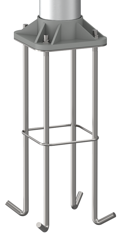Anchor bolts conform to ASTM F1554 Grade 55 and are provided with two hex nuts and two flat washers.